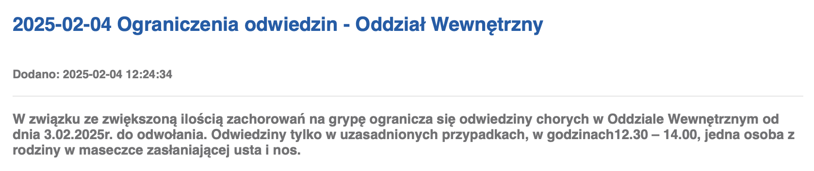 Lekarze podkreślają, że okres zimowy to czas wzmożonych zachorowań na choroby wirusowe, które w przypadku pacjentów szpitalnych mogą prowadzić do poważnych powikłań. Szczególnie groźne są infekcje dróg oddechowych, które mogą wywołać ciężkie zapalenie płuc i inne powikłania u osób z obniżoną odpornością. Wprowadzone restrykcje mają na celu ochronę zdrowia pacjentów oraz zapewnienie bezpieczeństwa personelowi medycznemu.
