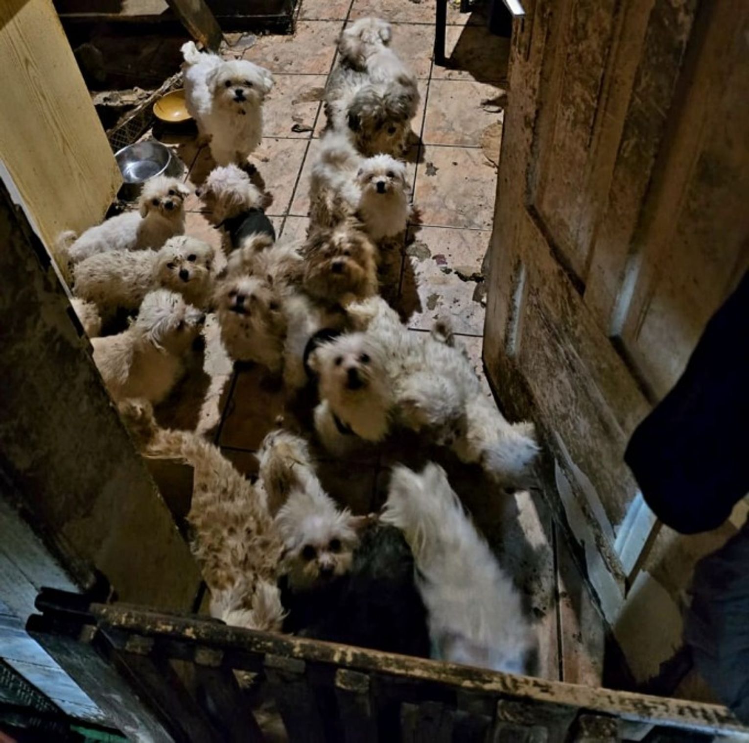 Na miejscu policjanci zastali 39 psów rasy prawdopodobnie maltańczyk zamkniętych w pomieszczeniach domu jednorodzinnego. Psy były brudne i nie miały dostępu do świeżej wody. Ponadto, w domu panował ogólny nieład, natomiast obecna na miejscu opiekunka zwierząt nie była w stanie okazać dokumentów potwierdzających rejestrację hodowli, jak również kart szczepień psów.