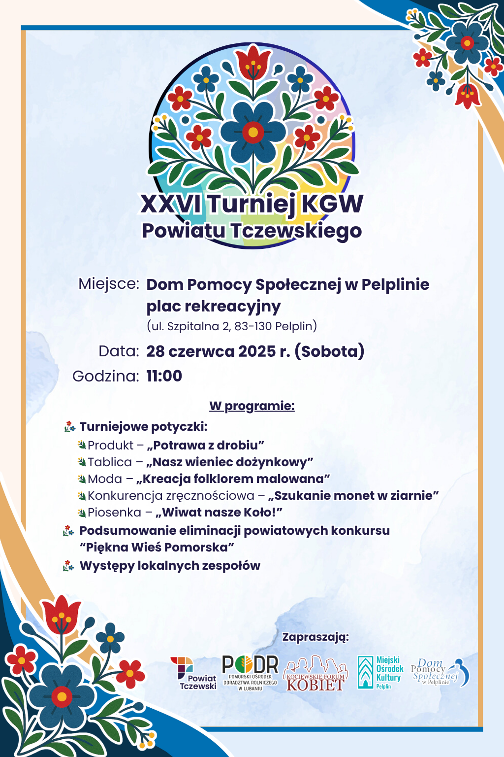 Wydarzenie odbędzie się w sobotę, 28 czerwca o godzinie 11.00 odbędzie się XXVI Powiatowy Turniej Kół Gospodyń Wiejskich.