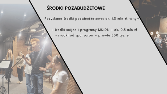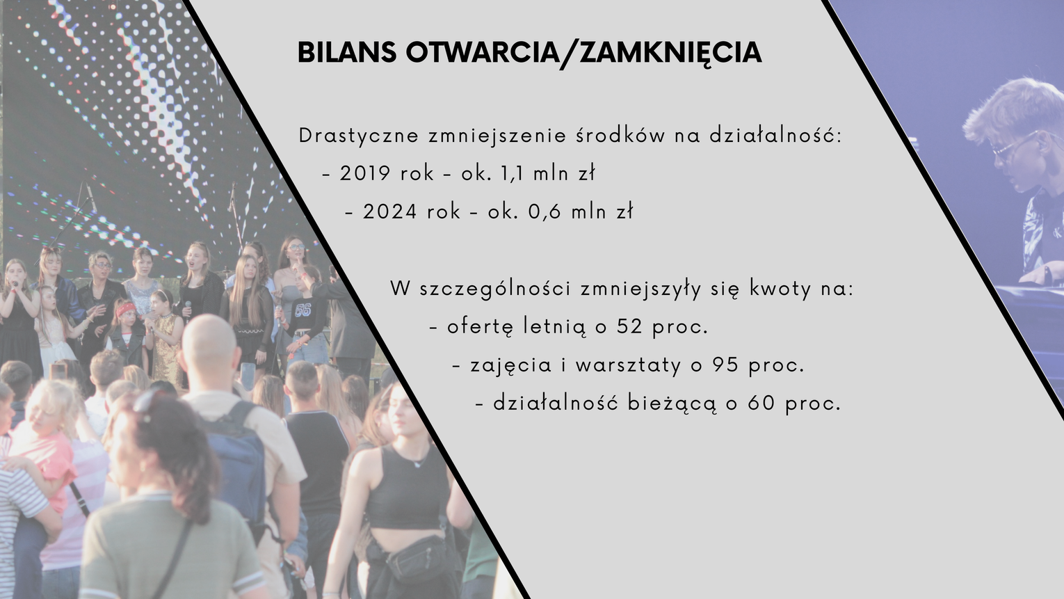 Brak jasnej komunikacji ze strony Urzędu Miejskiego znacząco wpływał na funkcjonowanie instytucji. Czasem musieliśmy działać w chaosie. Decyzje zapadały z opóźnieniem, były niejasne lub sprzeczne. Zdarzały się sytuacje, w których mimo zabezpieczenia środków na konkretne wydarzenia, pojawiały się problemy z ich przekazaniem. To stawiało nas w trudnej sytuacji organizacyjnej i finansowej.