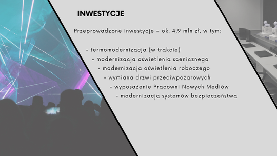 W ciągu ostatnich lat instytucja przeszła szereg kontroli. Zarówno wewnętrznych, jak i zewnętrznych, w tym audyt urzędu miasta, kontrole PIP, ZAIKS-u i innych instytucji. Wszystkie przeszliśmy bardzo dobrze.