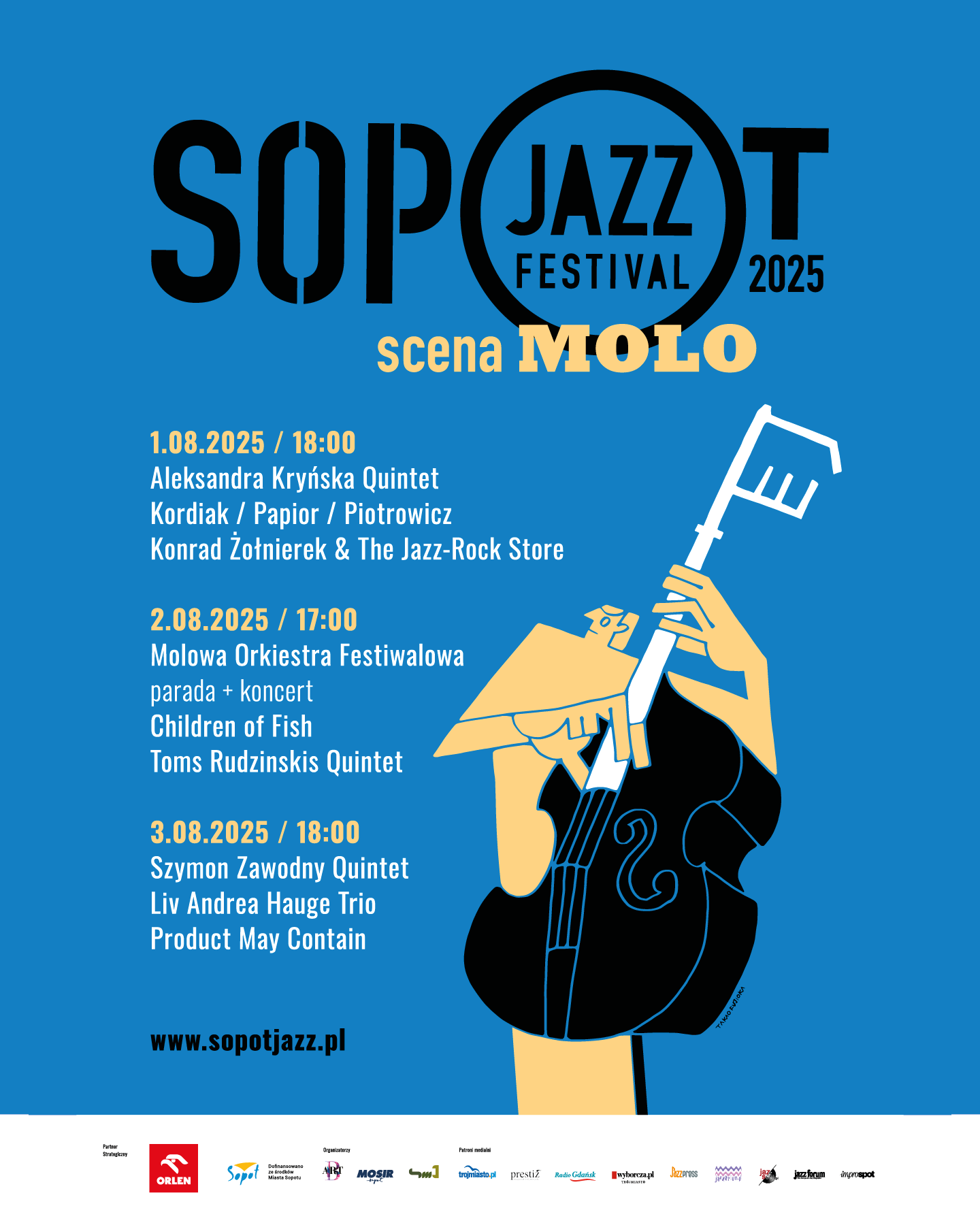 Sopot Jazz Festival Scena MOLO to kontynuacja dobrze znanego Sopot Molo Jazz Festival, który od 1996 roku przyciąga miłośników jazzu do sopockiego kurortu. W tym roku Miasto Sopot zdecydowało się połączyć duże jazzowe wydarzenia i stworzyć całoroczny Sopot Jazz Festival. Dzięki nowej formule i wsparciu Partnera Strategicznego ORLEN, festiwal ma szanse rosnąć w siłę i otwierać się na szerszą publiczność.