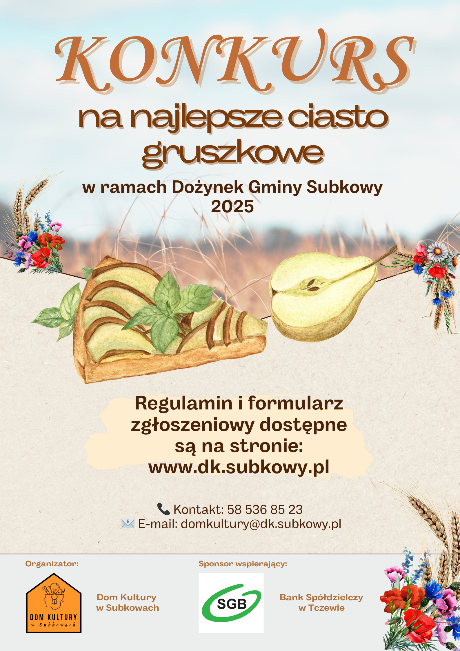 Miłośnicy kulinariów będą mogli wziąć udział w konkursie na najlepsze ciasto gruszkowe, z atrakcyjnymi nagrodami.