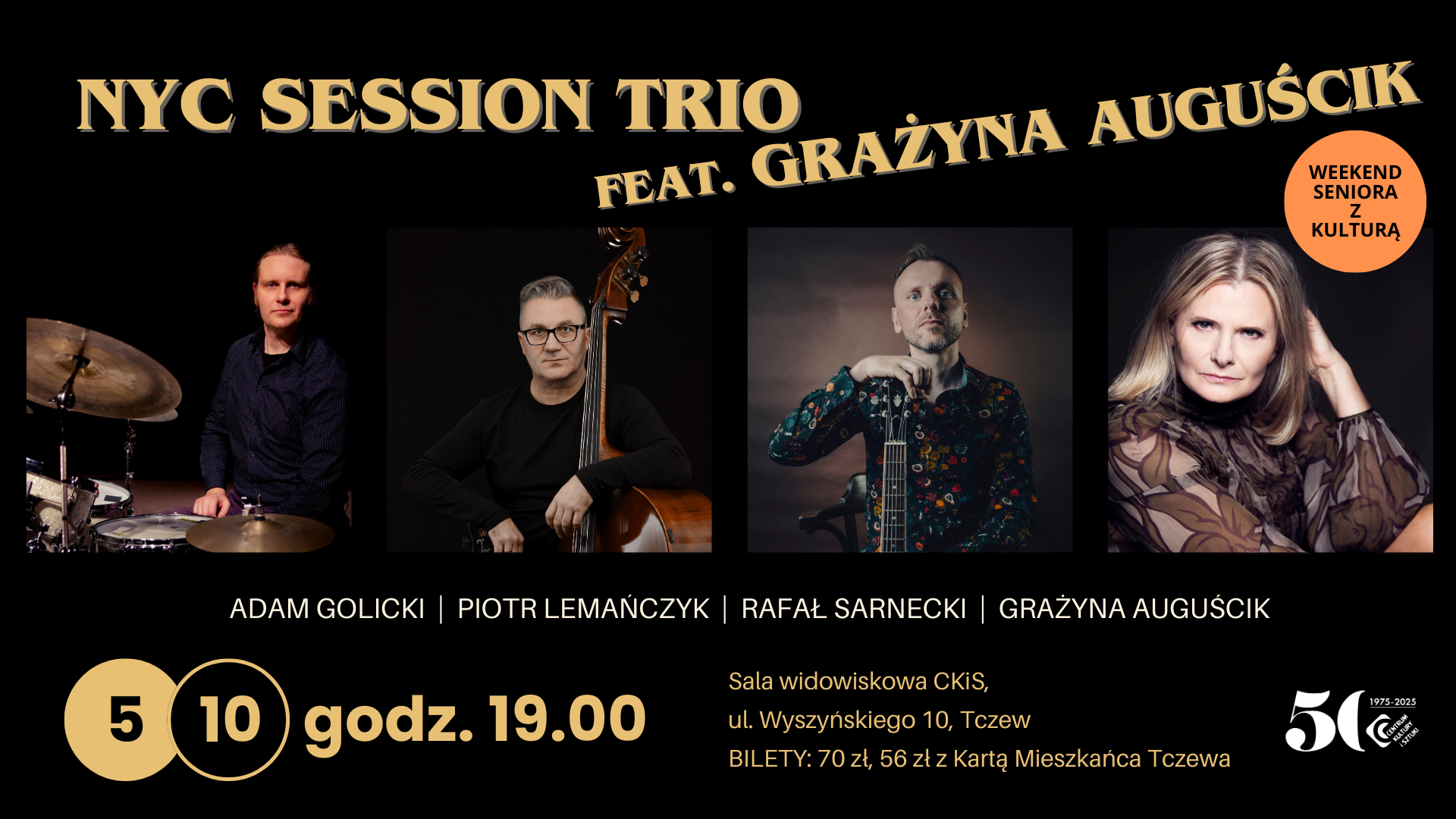 Zapowiada się wyjątkowy wieczór jazzowy, podczas którego wystąpi NYC Session Trio w specjalnym projekcie z udziałem wybitnej polsko-amerykańskiej wokalistki Grażyny Auguścik.