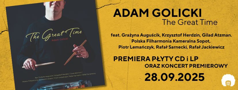 Adam Golicki - perkusista, kompozytor, muzyk sesyjny, pedagog. Ma na koncie kilkadziesiąt płyt z takimi sławami jak Urszula Dudziak, Cezik, Dominik Kisiel, Marcin Wądołowski, Paul Band, Cezary Paciorek i inni. Współpracuje m.in z Maciejem Sikałą, Maciejem Grzywaczem, Piotrem Lemańczykiem, Przemkiem Dyakowskim, Dominikiem Bukowskim, Kubą Stankiewiczem, Ingą Lewandowską czy Grzegorzem Nagórskim, Koncertuje na całym świecie. W najbliższą niedzielę 28 września 2025 roku wydaje nową czwartą płytę sygnowaną swoim nazwiskiem zatytułowaną "The Great Time". Ale płytę nagrał nie sam - do współpracy zaprosił sławy Grażynę Auguścik, Krzysztofa Herdzina i Polską Filharmonię Kameralną Sopot. Można zatem spodziewać się na tym albumie muzyki łączącej jazz, głos i orkiestrę smyczkową!