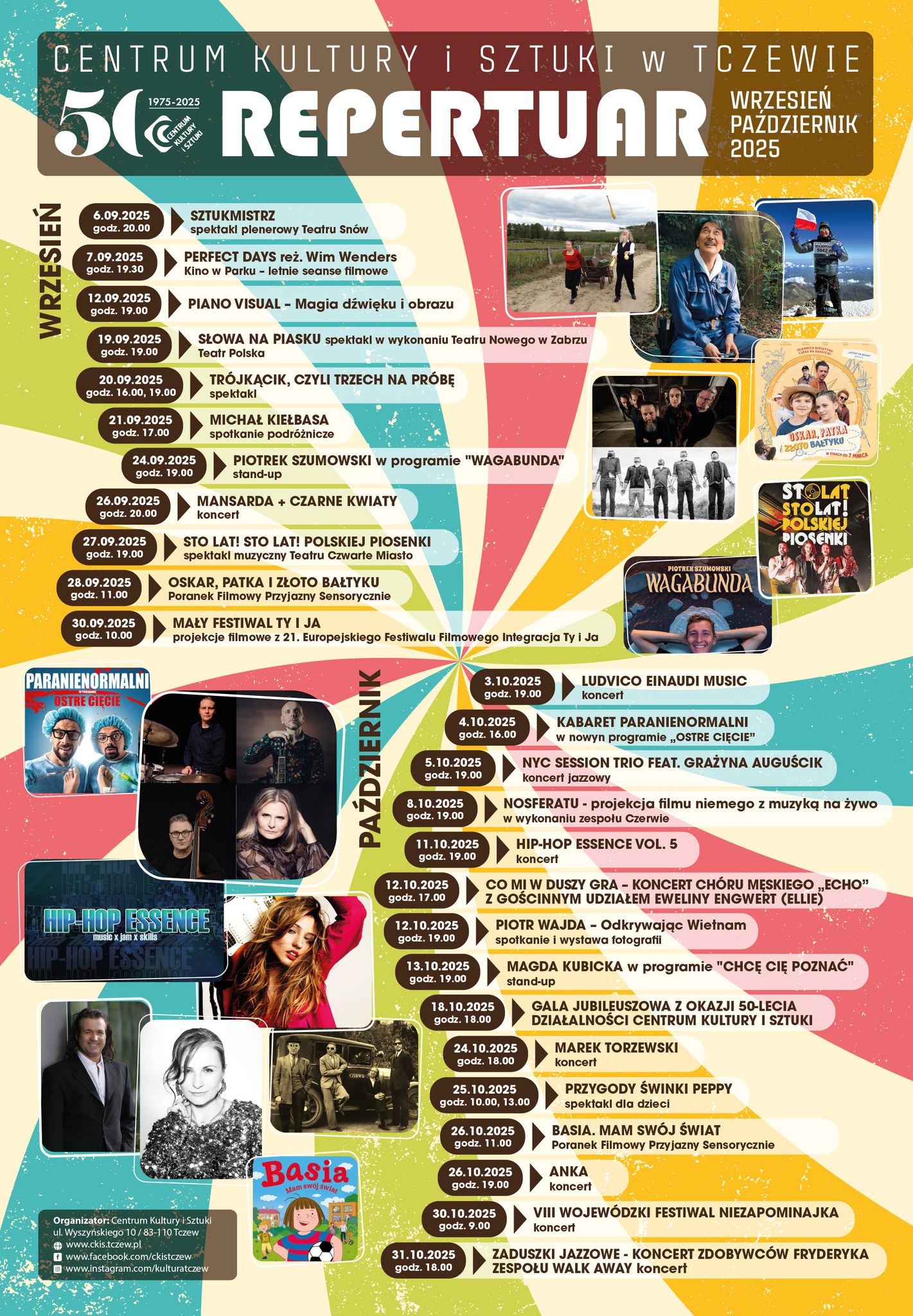 Cały repertuar repertuar nasz jest dostępny na naszej stronie internetowej. www.ckis.tczew.pl, także możecie państwo śledzić nasze wydarzenia na mediach społecznościowych. Zachęcamy, żeby zapoznać się z tym, co się dzieje w październiku.