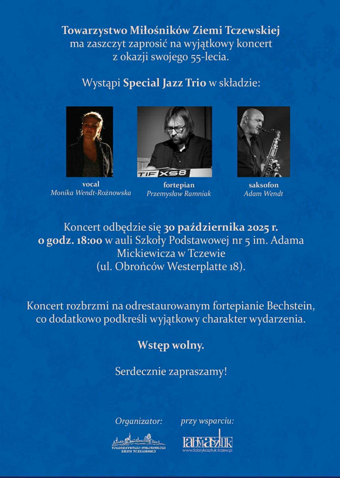 Towarzystwo Miłośników Ziemi Tczewskiej organizuje wydarzenie z okazji 55-lecia działalności i zaprasza na koncert. Odbędzie się on w czwartek, 30 października o 18:00.