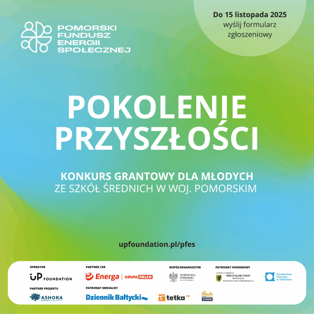 W Fundacji Ashoka wspieramy młodych ludzi w stawaniu się sprawczymi, w podejmowaniu inicjatyw i wprowadzaniu zmian w swoim otoczeniu. Pomorski Fundusz Energii Społecznej, realizowany przez UP Foundation, ma właśnie taki cel – rozwijać kompetencje społeczne, pomagać rozumieć lokalne wyzwania i tworzyć realne rozwiązania.