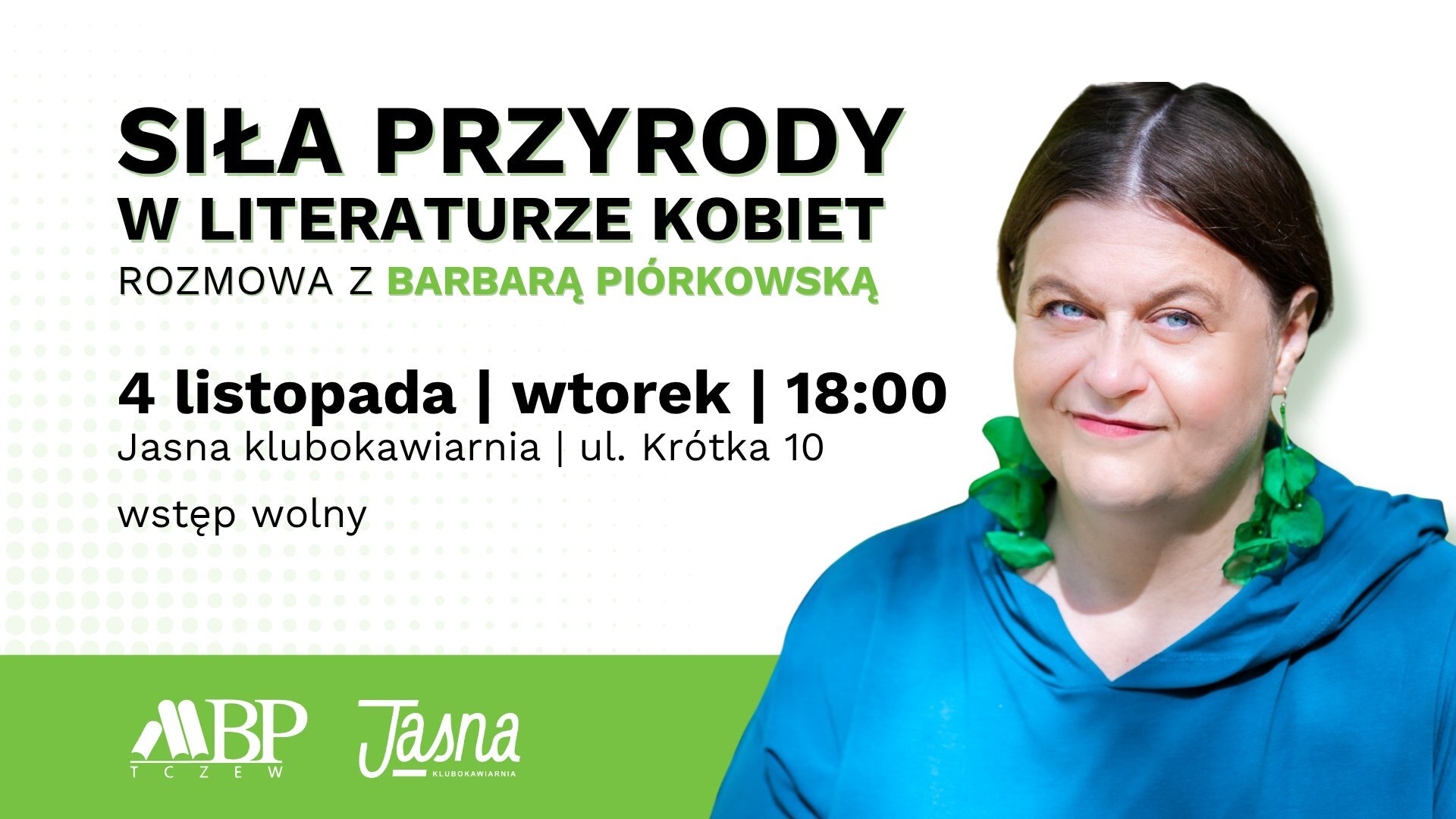 We wtorek, 4 listopada o 18:00 w Jasnej odbędzie się spotkanie z pisarką, feministką i miłośniczką przyrody, Barbarą Piórkowską.
