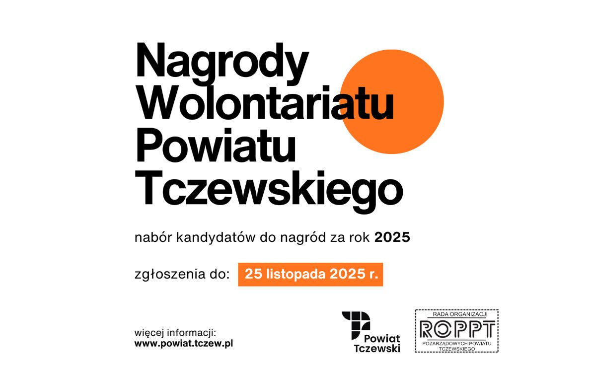 Rada Organizacji Pozarządowych Powiatu Tczewskiego prowadzi nabór do 16. edycji Nagrody Wolontariatu Powiatu Tczewskiego. Konkurs obejmuje pięć kategorii i skierowany jest do szerokiego grona odbiorców: wolontariuszy, organizacji, przedsiębiorstw oraz osób korzystających z pomocy społeczników.