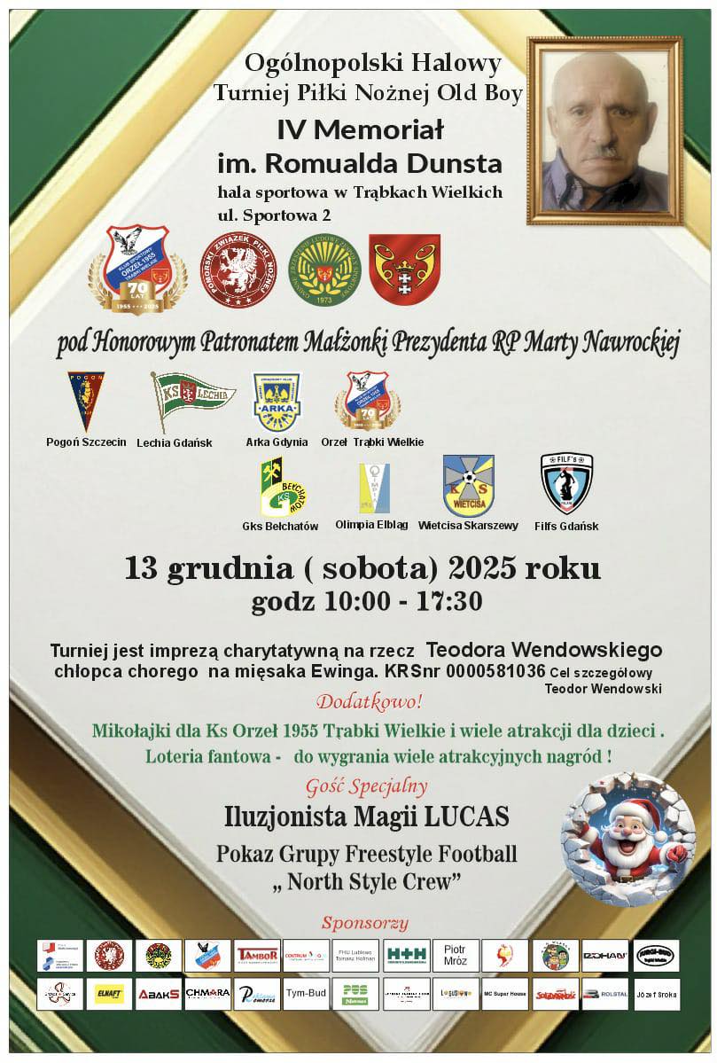 IV memoriał im. Romualda Dunsta odbędzie się pod patronatem małżonki prezydenta Marty Nawrockiej. Początek zaplanowano na godzinę 10:00.