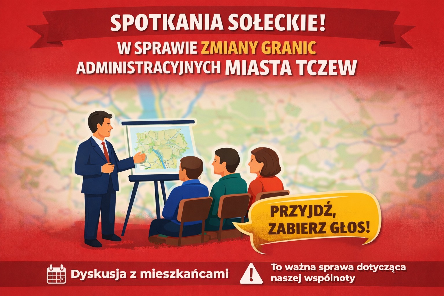 Gmina Tczew organizuje spotkania z mieszkańcami sołectw dotyczące planowanej zmiany granic administracyjnych Miasta Tczewa, polegającej na włączeniu w granice miasta wybranych sołectw lub ich części z terenu gminy. Podczas spotkań przedstawiane są informacje na temat procedury, możliwych konsekwencji oraz stanowisko Gminy Tczew. Jest to również okazja do zadawania pytań i rozmowy na temat planowanych zmian.