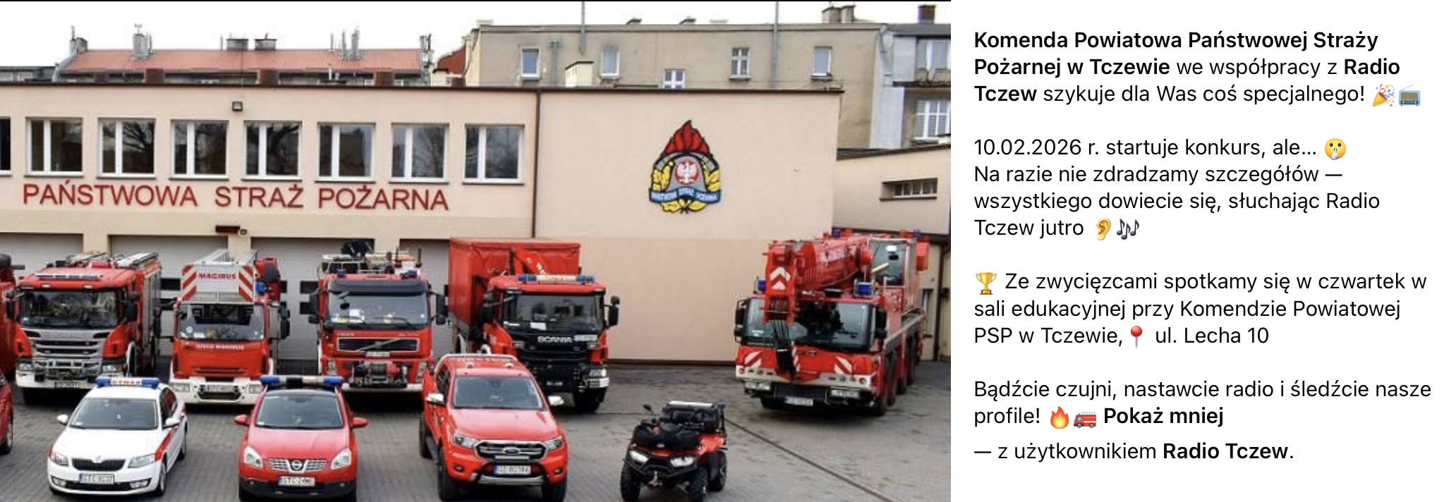 We wtorek, 10 lutego zapraszamy do śledzenia mediów społecznościowych naszego radia oraz PSP w Tczewie. Przygotowaliśmy dla Was specjalną akcję!