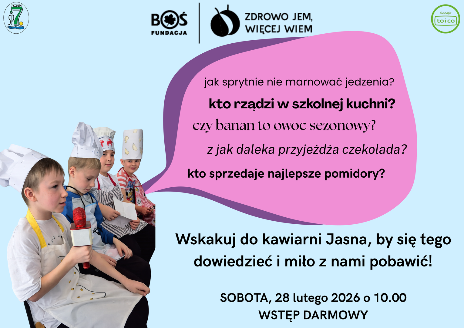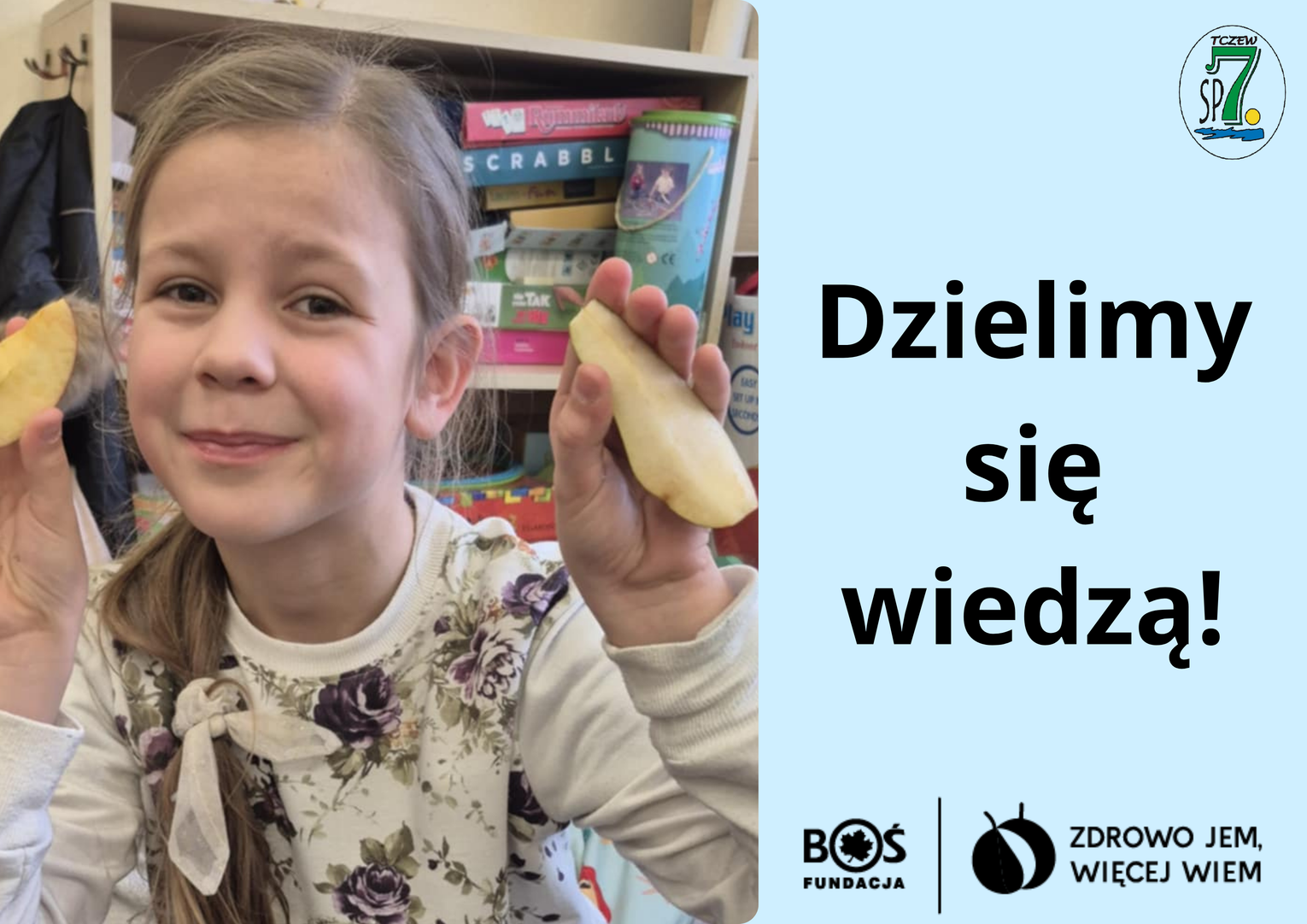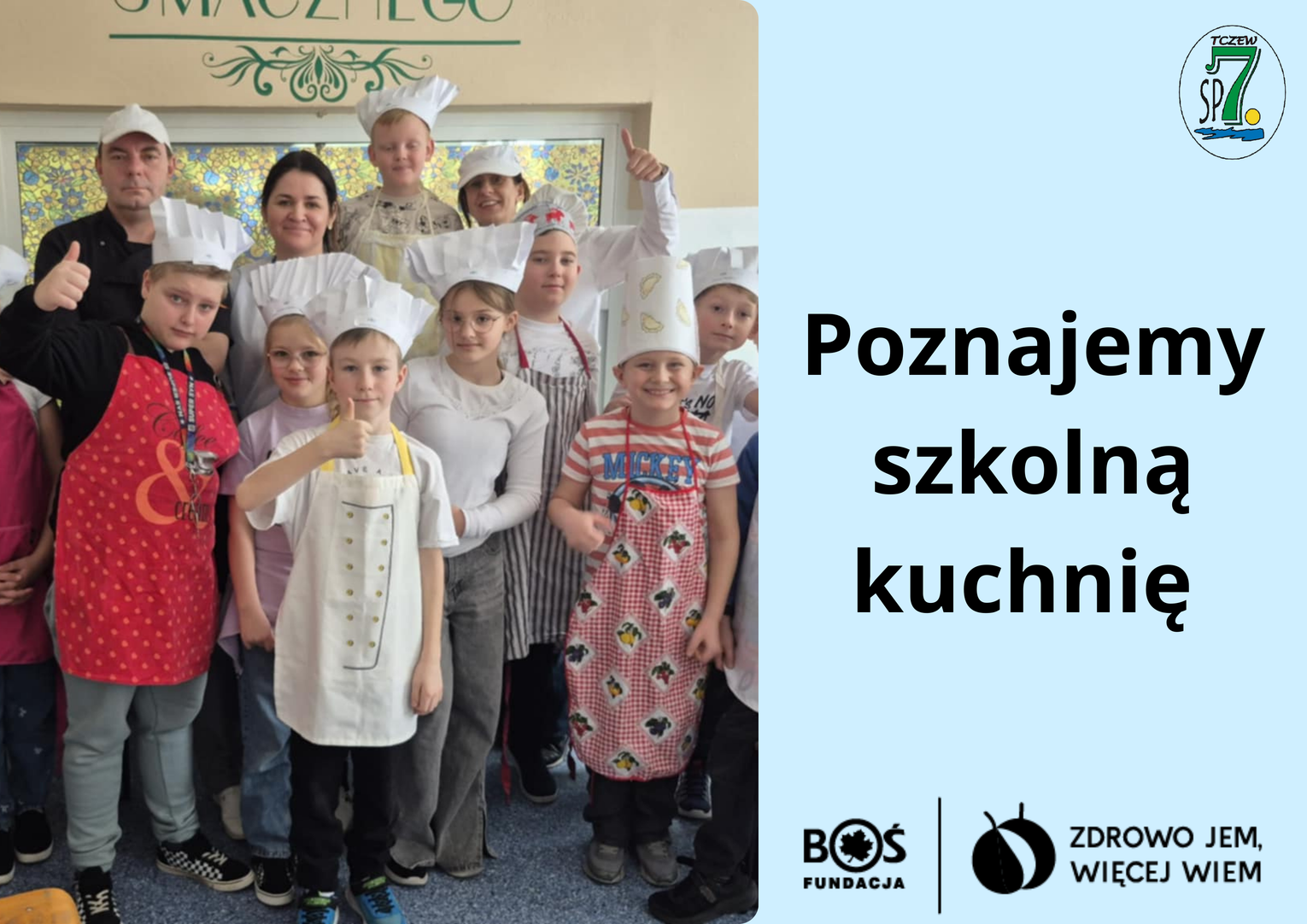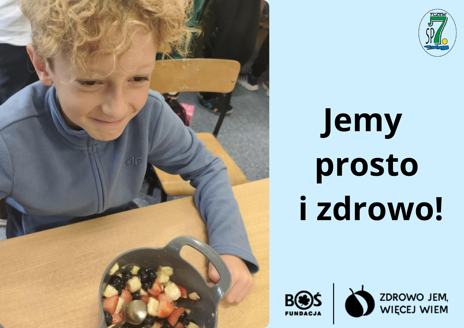 Uczniowie klasy 3C Szkoły Podstawowej nr 7 w Tczewie serdecznie zapraszają wszystkich zainteresowanych na spotkanie podsumowujące realizację ogólnopolskiego projektu „Zdrowo jem, więcej wiem” realizowanego w ramach programu Fundacji BOŚ: