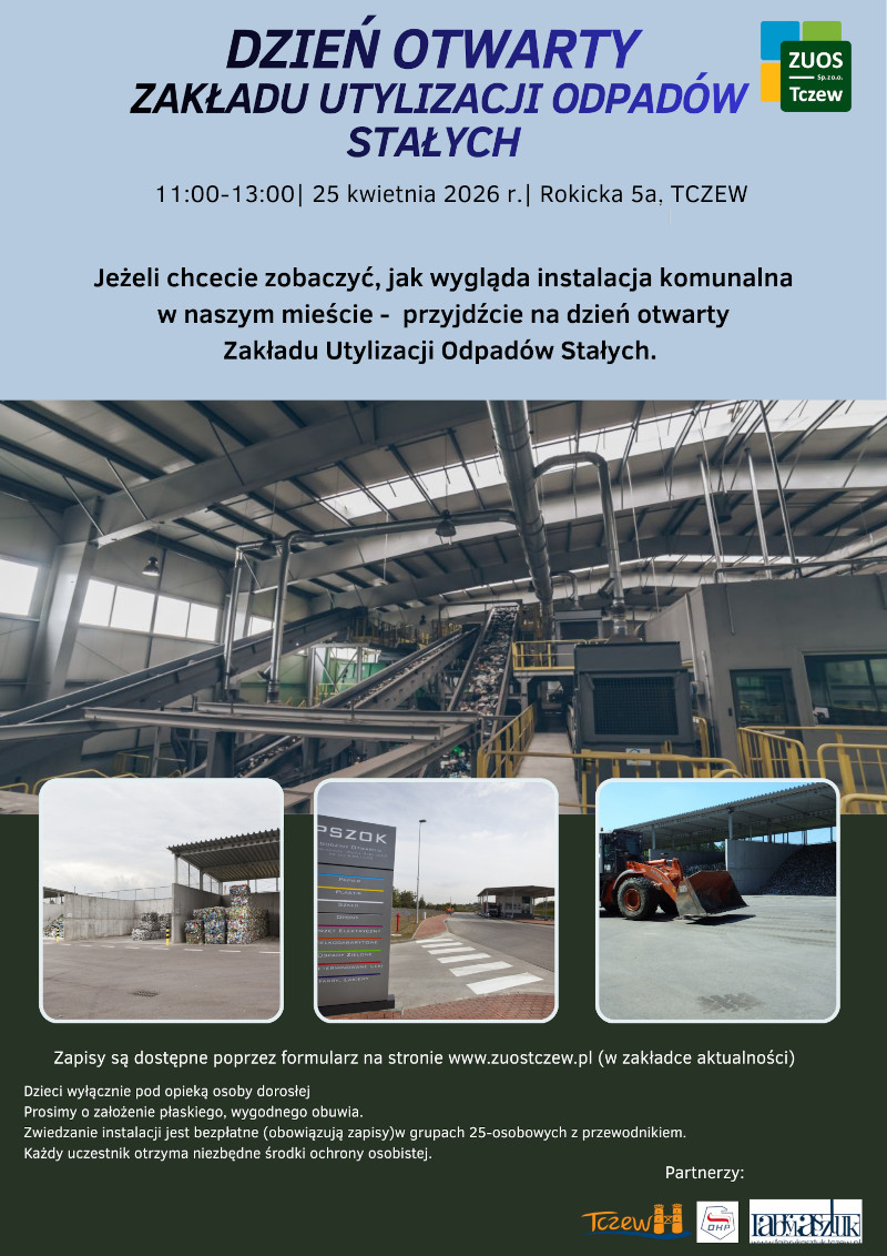 Zakład Utylizacji Odpadów Stałych Sp. z o.o. w Tczewie organizuje dzień otwarty, który odbędzie się 25 kwietnia (od 11:00 do 13:00) przy ul. Rokickiej 5A.
