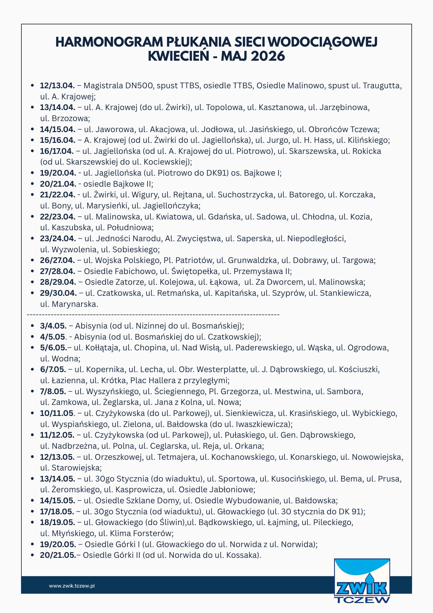 Pracownicy ZWiK monitorują przebieg prac i pozostają do dyspozycji mieszkańców. Wszelkie uwagi dotyczące jakości wody lub zgłoszenia o awariach można przekazywać pod dedykowane numery telefonów: