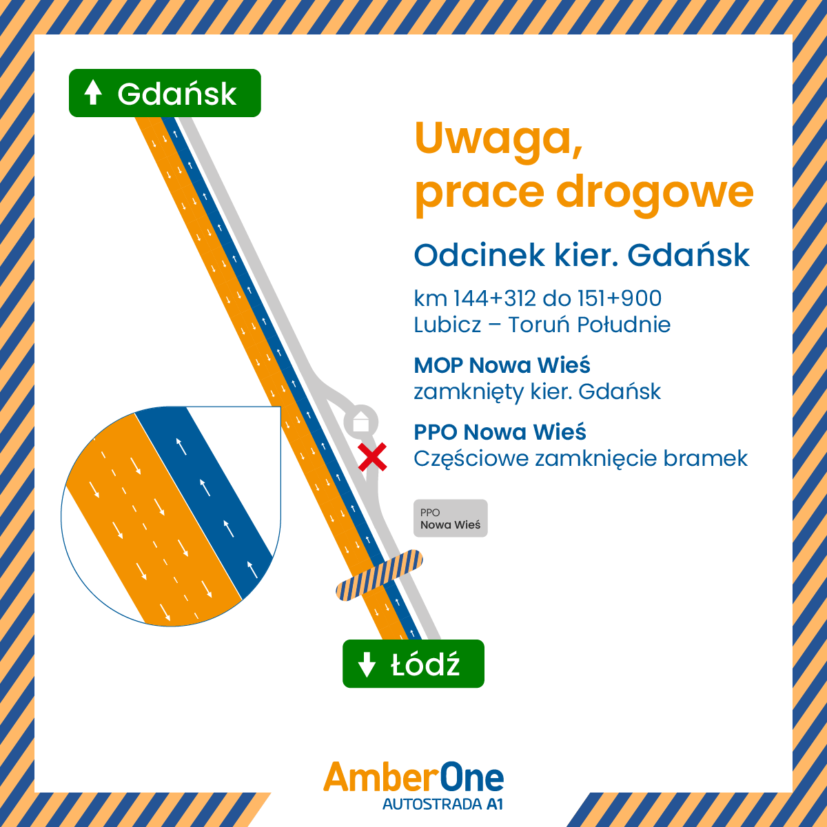 - PPO Nowa Wieś: na bramkach mogą występować czasowe zamknięcia poszczególnych pasów poboru opłat.