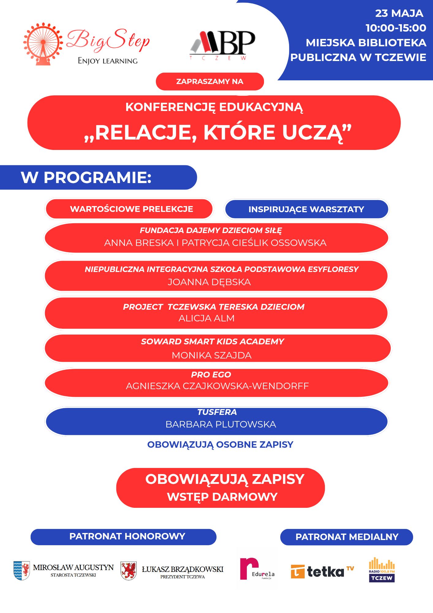 Program nie kończy się jednak na teorii. Uczestnicy wezmą udział w warsztatach podzielonych na dwa bloki, podczas których będą ćwiczyć „sytuacje z życia wzięte”. Wszystko po to, by ułatwić komunikację z dziećmi i zadbać o ich kondycję psychiczną. Na scenie pojawią się także znane tczewskie ekspertki: psycholożka Agnieszka Czajkowska-Wendorf oraz Barbara Plutowska, która poprowadzi specjalny trening „Stań za sobą”.