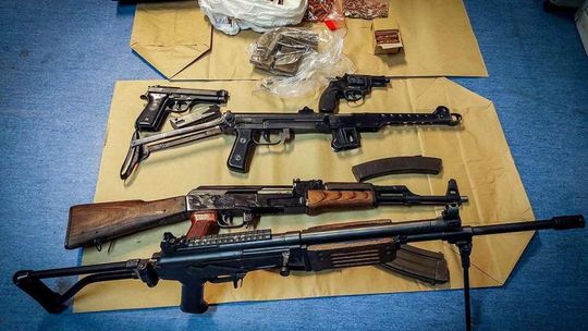 Podczas działań policjanci zabezpieczyli 98 jednostek broni, w tym pistolety maszynowe Scorpion, Uzi, Rak, PPS wz. 43, karabinki szturmowe AK 47 - Kałasznikow, AR 15, Galil ARM, pistolety Glock, CZ, Luger, Beretta, H&K USP, Grand Power, Norinco, karabiny rewolwery, sztucery, dubeltówki oraz broń samodziałową, przerobioną bądź wytworzoną przez członków grupy, a także kuszę z bełtami.
