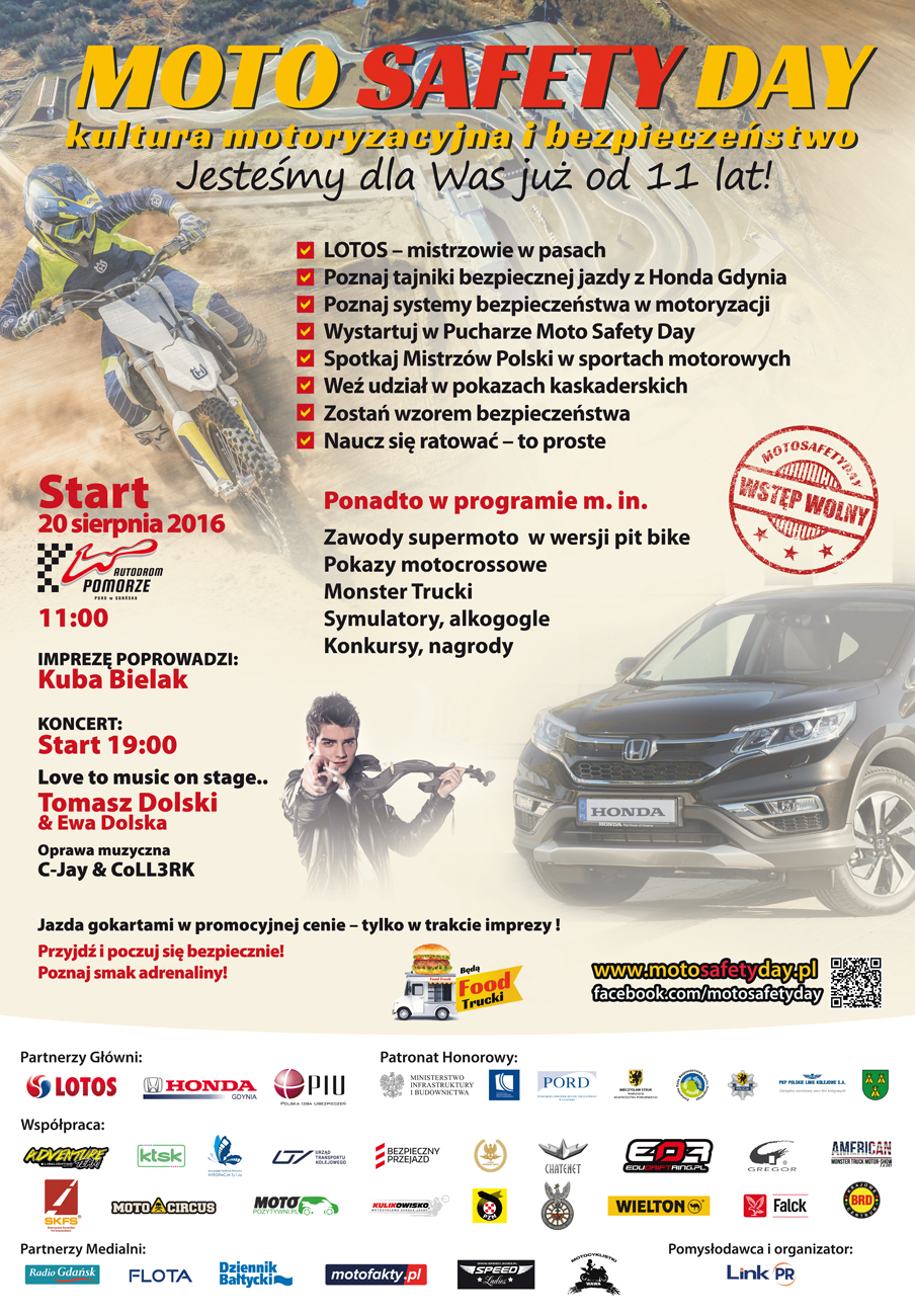 Galeria zdjęć z 11. edycji Moto Safety Day. Impreza odbyła się 20 sierpnia 2016 roku na Autodromie Pomorze w Pszczółkach.