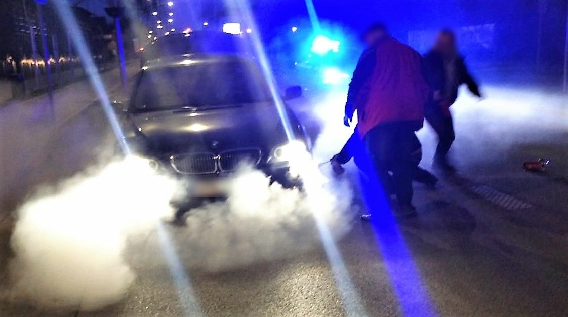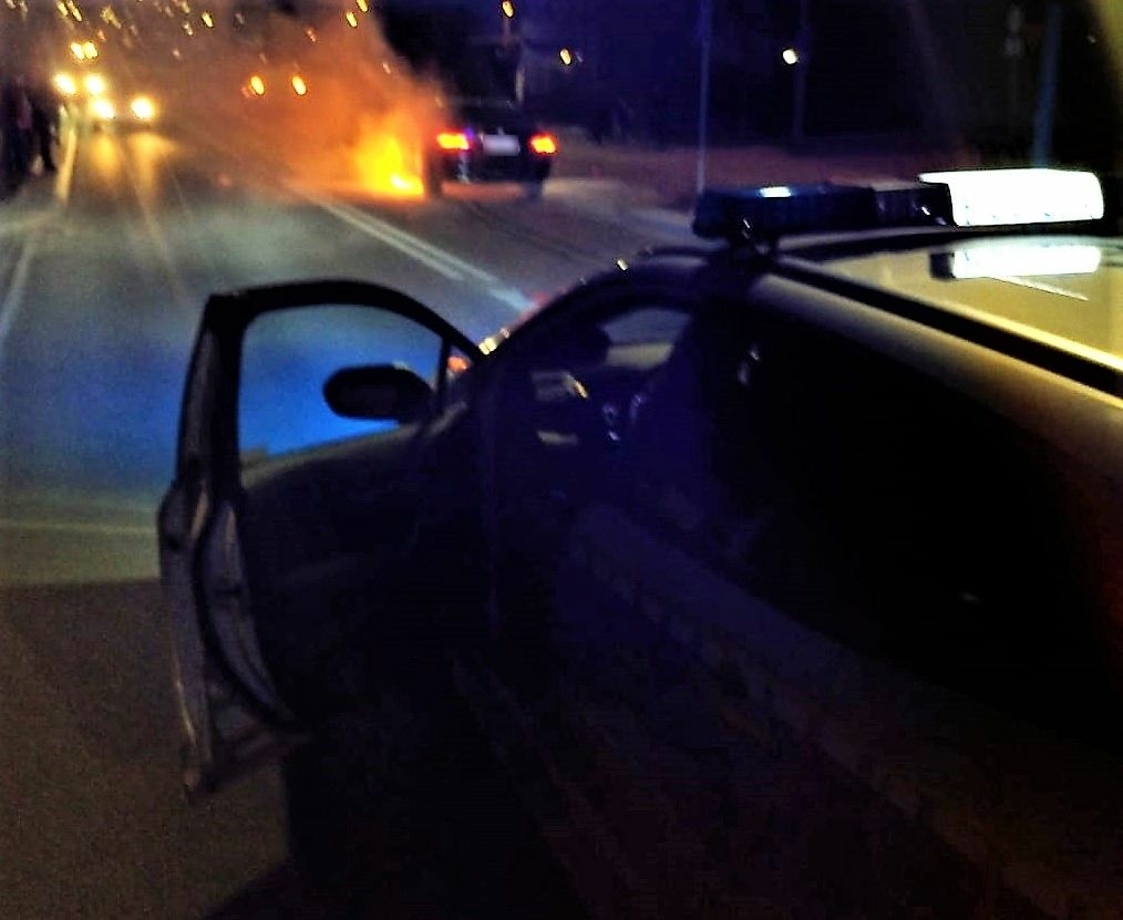 Dzielnicowi gasili płonące BMW (fot. KPP Tczew)