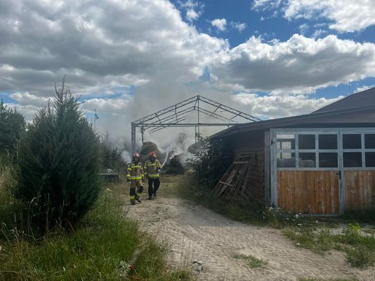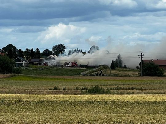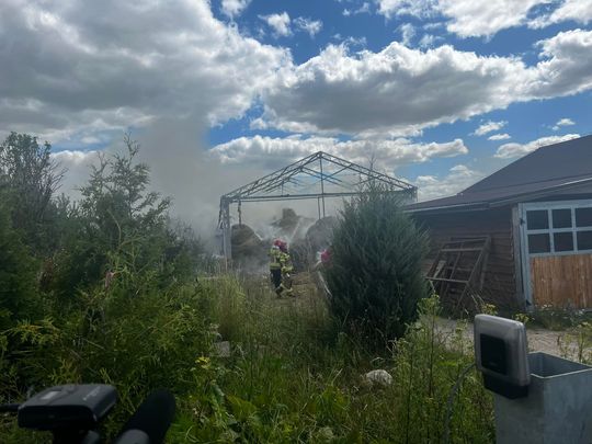 Pożar stodoły w Stanisławiu gaszony przez 11 zastępów Państwowej Straży Pożarnej w Tczewie