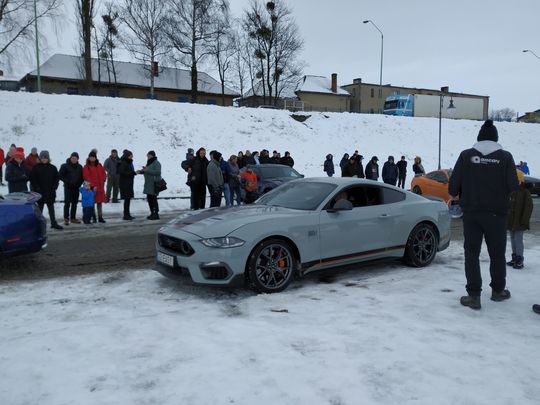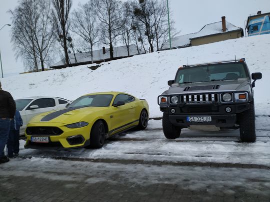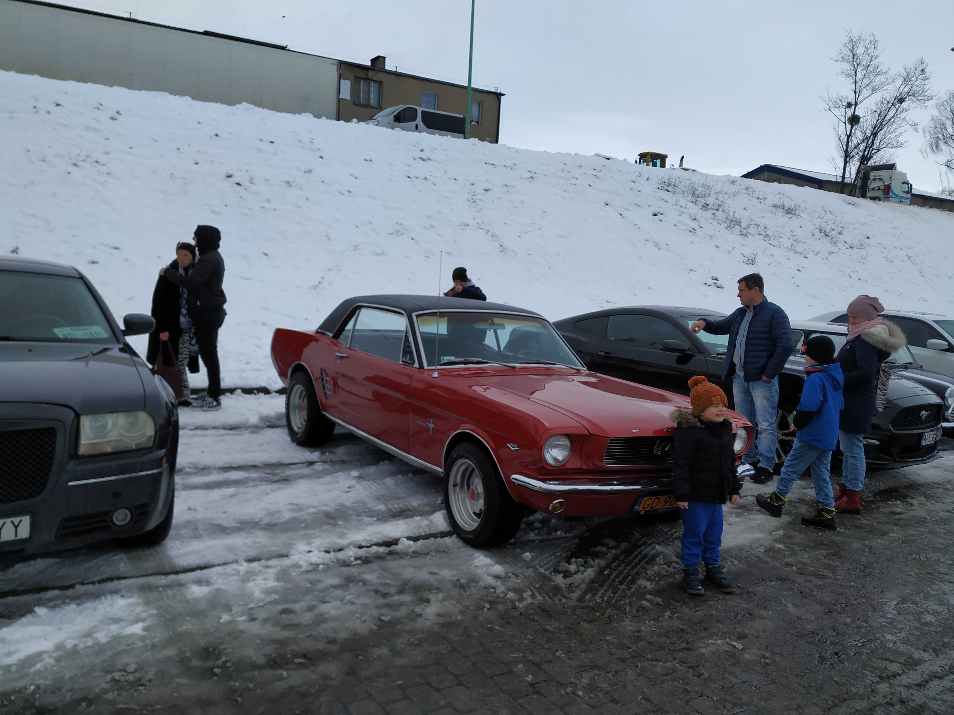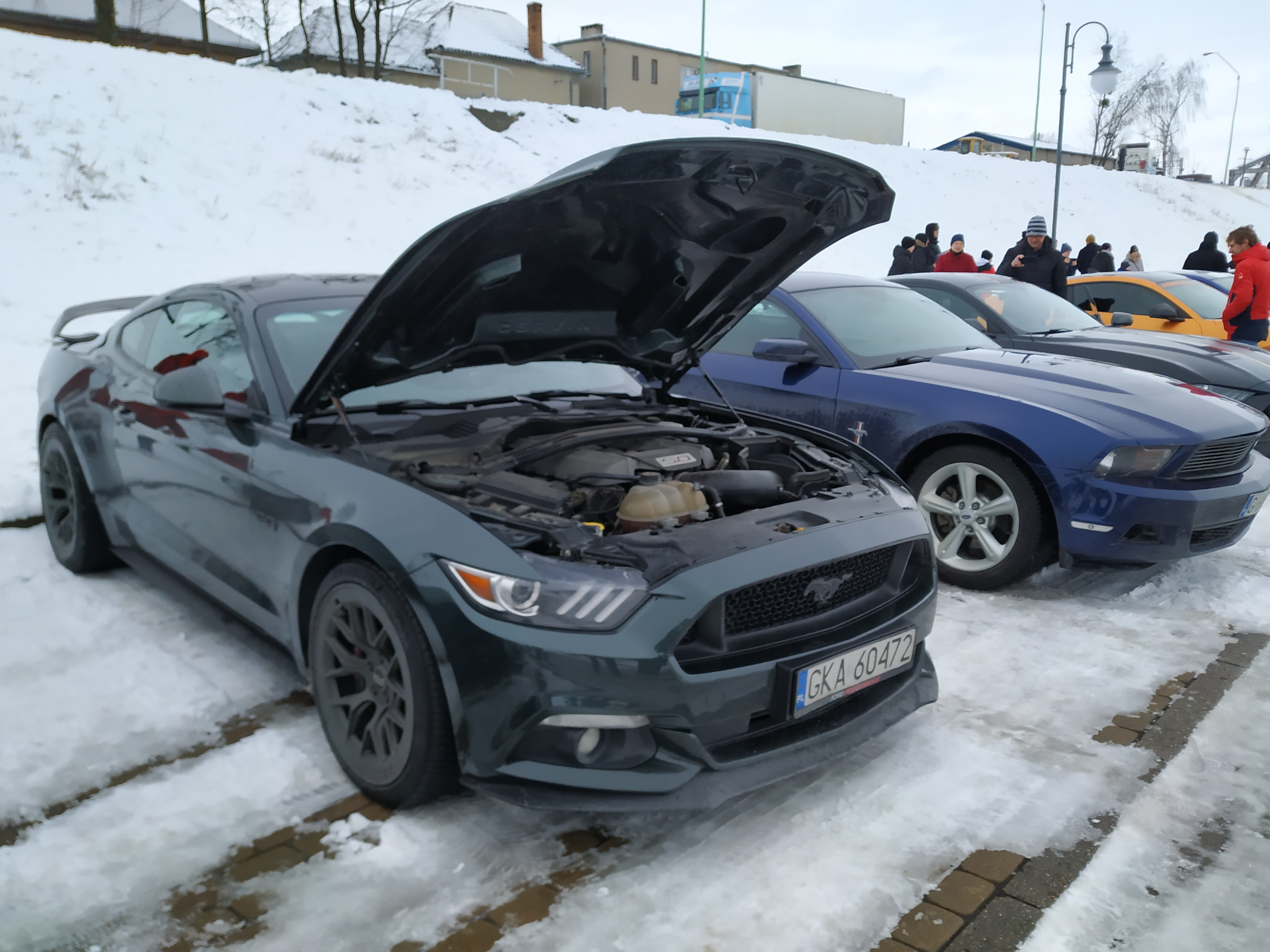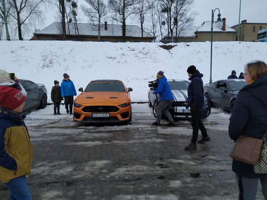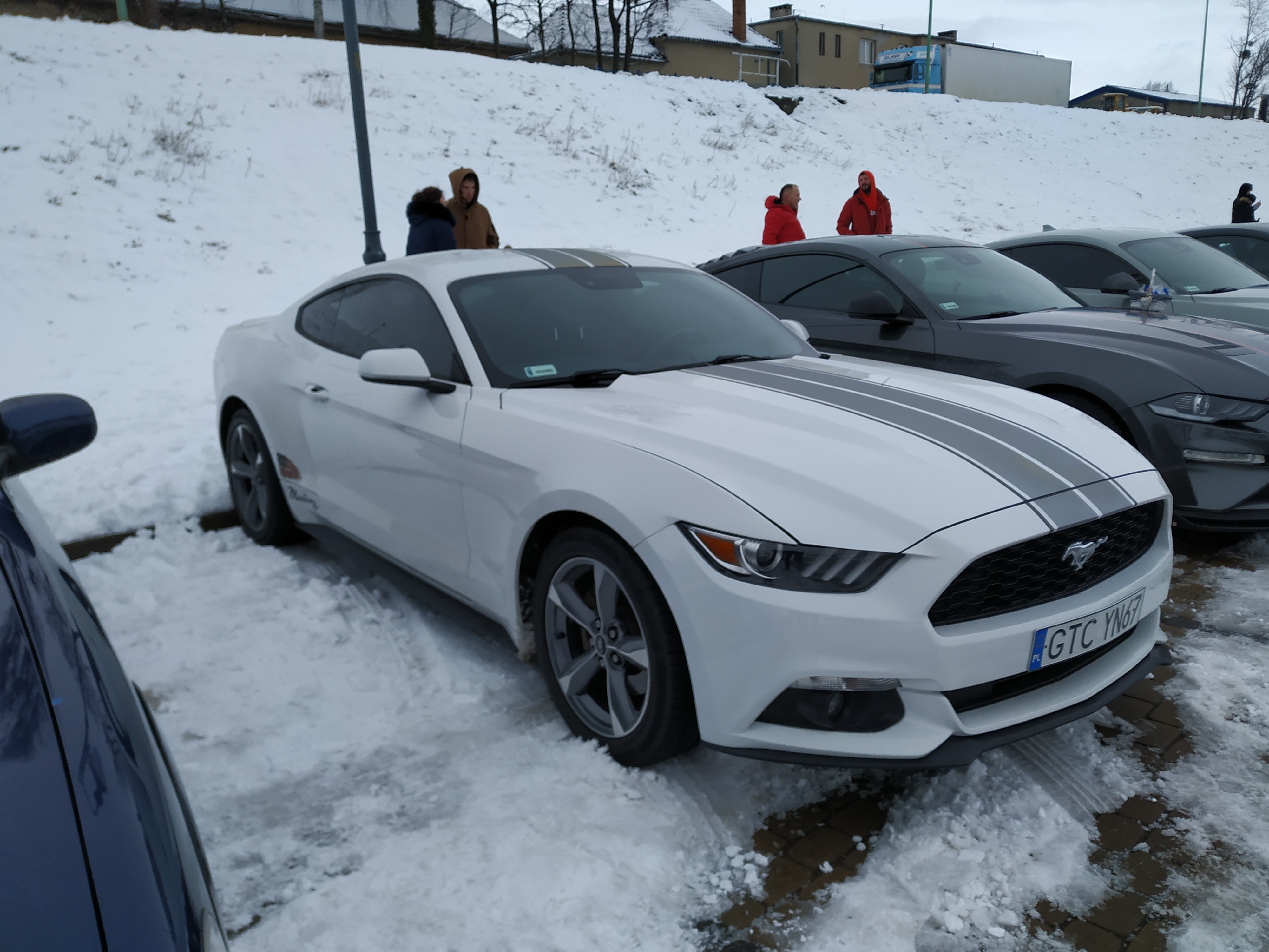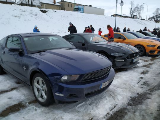 Zlot Mustangów na parkingu na ulicy Zamkowej w Tczewie, 11 marca 2023