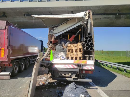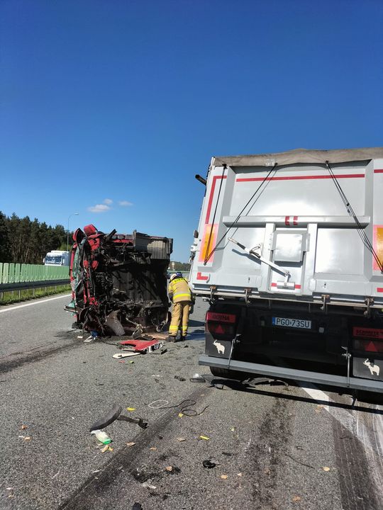 Wypadek na autostradzie A1. Zderzyły się dwa samochody ciężarowe