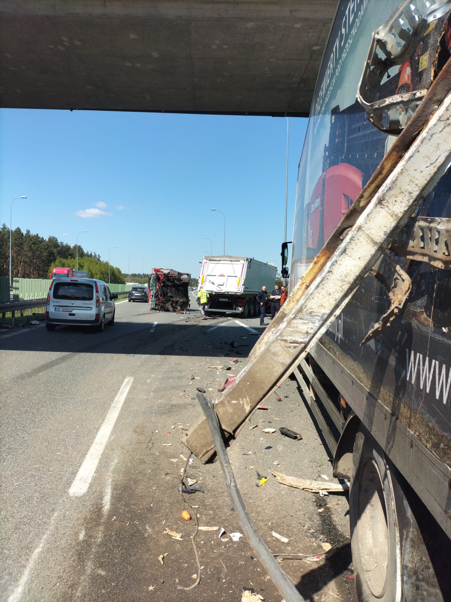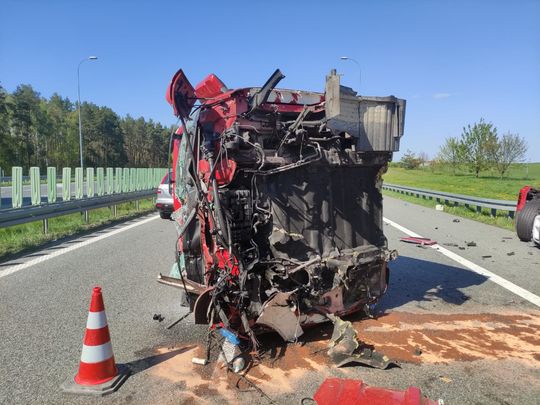 Wypadek na autostradzie A1. Zderzyły się dwa samochody cięża...