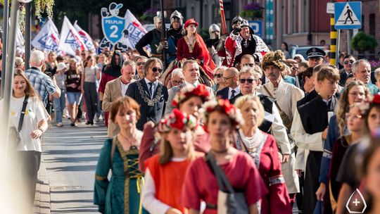 Jednym z najważniejszych wydarzeń była niedzielna historyczna parada, która przemaszerowała ulicami Pelplina. W barwnym orszaku szli rekonstruktorzy, zespoły muzyki dawnej, parlamentarzyści, samorządowcy oraz licznie zgromadzeni turyści i mieszkańcy. Parada zatrzymała się na rondzie przy urzędzie miejskim, gdzie Burmistrz Mirosław Chyła wręczył symboliczny klucz do miasta Księciu Mestwinowi, który na czas jarmarku sprawował w Pelplinie swoje rządy.