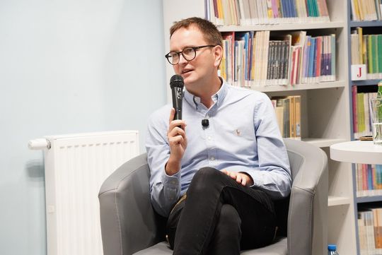 Wieczór rozpoczął się od poruszającej rozmowy z Grzegorzem Kwiatkowskim – poetą, muzykiem i wykładowcą Uniwersytetów Yale i Oxford, którego twórczość dotyka tematów pamięci, przemocy i etyki. Jako członek zespołu Trupa Trupa współtworzył muzykę do filmu Franz Kafka – polskiego kandydata do Oscara. Spotkanie poprowadził Marcin Dybuk, dziennikarz i autor podcastu „PodRóż do męskości”. Publiczność czytała wybrane utwory Kwiatkowskiego, a ich treść stawała się punktem wyjścia do wspólnej refleksji. To była rozmowa trudna, ważna i głęboko zapadająca w pamięć.
