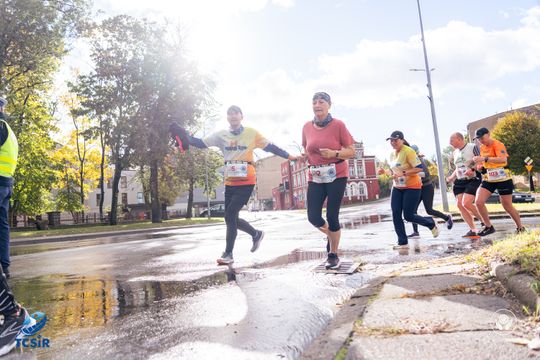 Zmagania dorosłych rozpoczęły się o godz. 12:00. Tutaj pogoda była bardziej łaskawa - przestało padać, a nawet pojedyncze promyki słońca przebijały się przez wiszące nad miastem ciemne chmury. Na dystansie 10 km rywalizowało 257 biegaczy. Najlepszy czas: 32 min i 18 sekund, wszyscy biegacze zmieścili się w limicie czas wyznaczonym na 1 godz. 30 min. Ostatni wynik 1 godzina 18 minut 10 sekund jest o 7 minut lepszy od ostatniego wyniku z zeszłego roku.