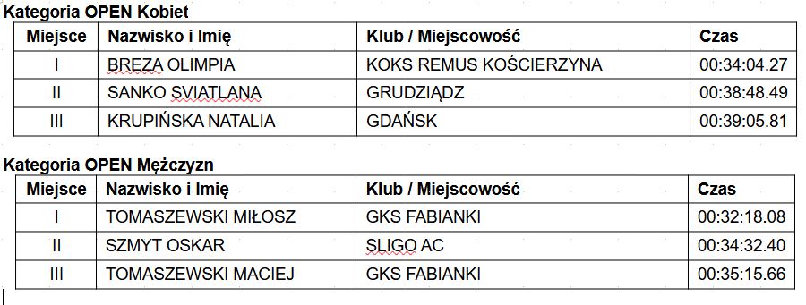 Pełne wyniki biegu dostępne na stronie www.elektroniczne zapisy.pl -> https://elektronicznezapisy.pl/event/10025/results.html