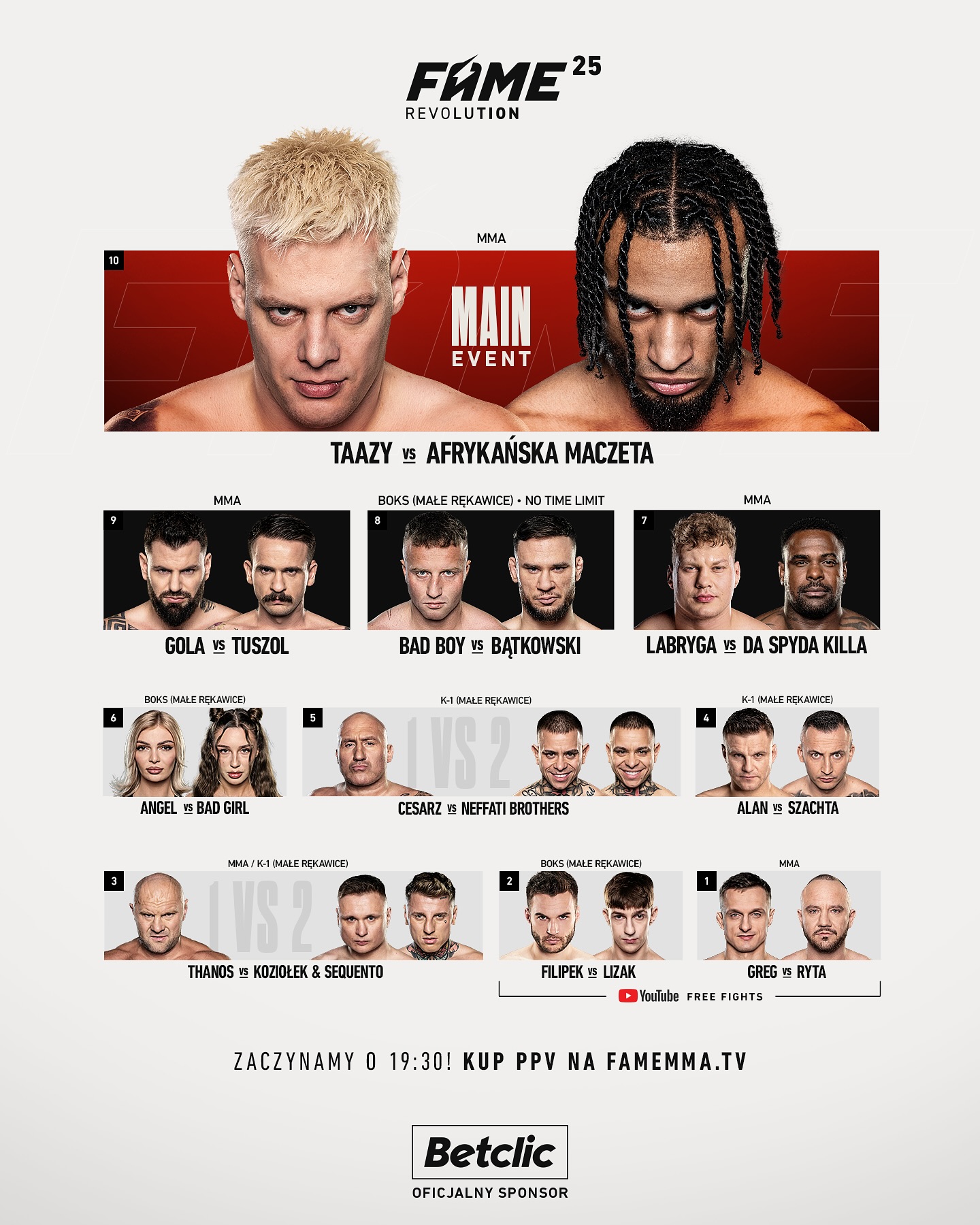 FIGHT CARD sobotniej GALI FAME 25: REVOLUTION: